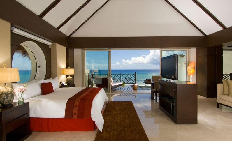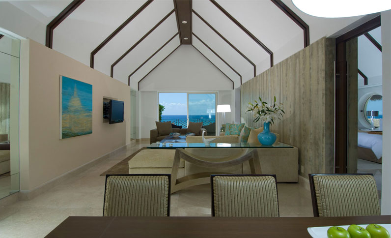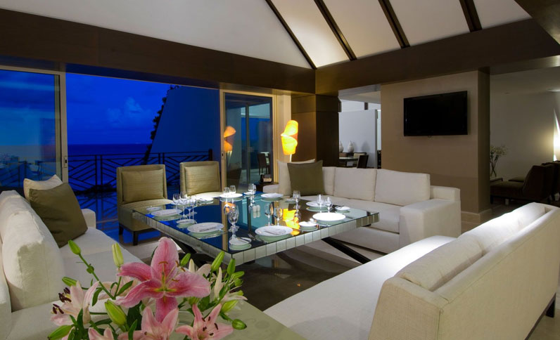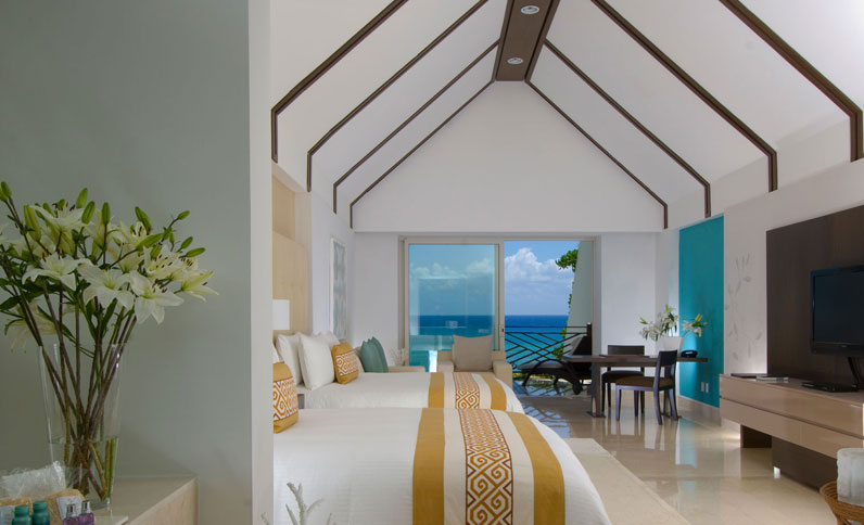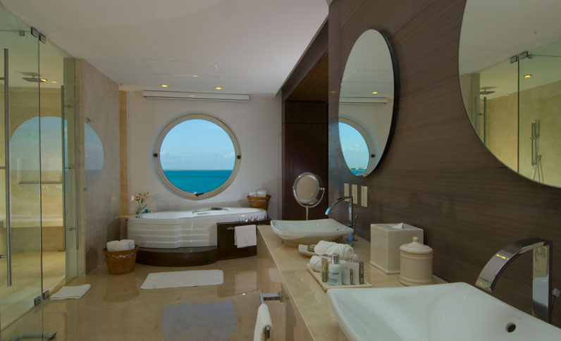 Experimente o luxo e o conforto absoluto nestas suítes de dois quartos, decoradas com cores suaves para criar um ambiente delicado e relaxante. Descanse em seu terraço com piscina privada de imersão, enquanto deleita o paladar com bebidas de seu bar. O banheiro conta com ducha dupla (de mão e de chuva), uma com parede de mármore e a outra com arte em madeira local. Da banheira de hidromassagem interior até o televisor de tela plana, cada detalhe desta suíte de 234 m2 é ideal para férias no paraíso da Riviera Maya. Desfrute uma massagem de 50 minutos por adulto, serviço de mordomo Concierge personalizado e transporte VIP desde e para o aeroporto.